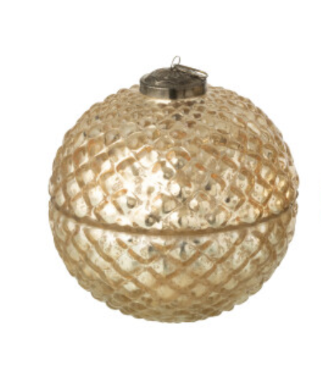 Bougie parfumée Boule de Noël, dimensions 17,5 cm x 17,5 cm x 18,5 cm.