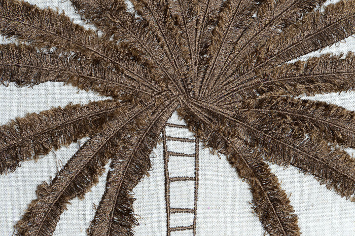Set de 2 coussins palmiers assortis, en coton beige avec bordure franges.