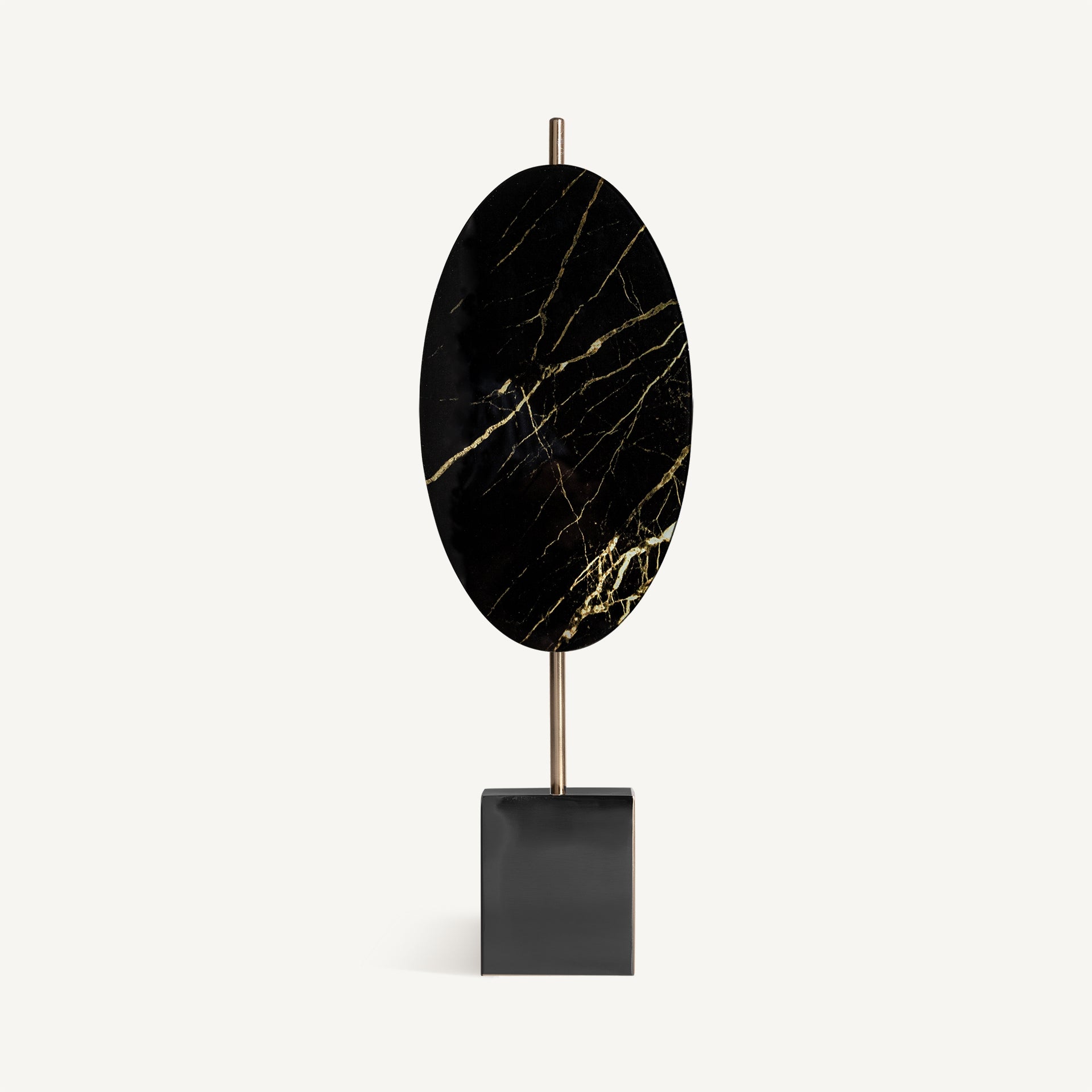 Objet de décoration, finition en laiton noir et verre doré, dimensions 16x9x50cm. Cette figurine apportera une touche chic et contemporaine à votre pièce.