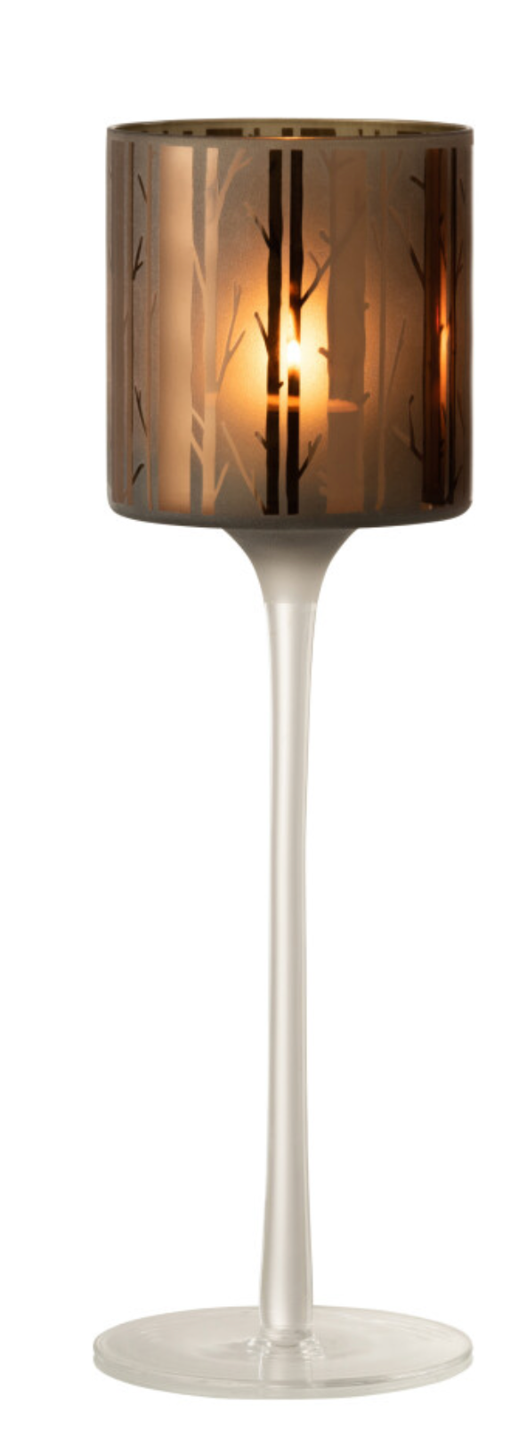 Photophore sur pied, marron, dimensions 9 cm x 9 cm x 29,5 cm.